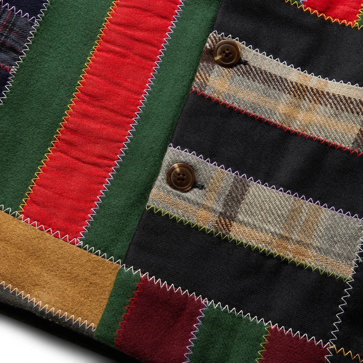 A vintage patchwork quilt featuring a 5-Bar design inspired this boxy jacket crafted of wool and framed with raglan sleeves.