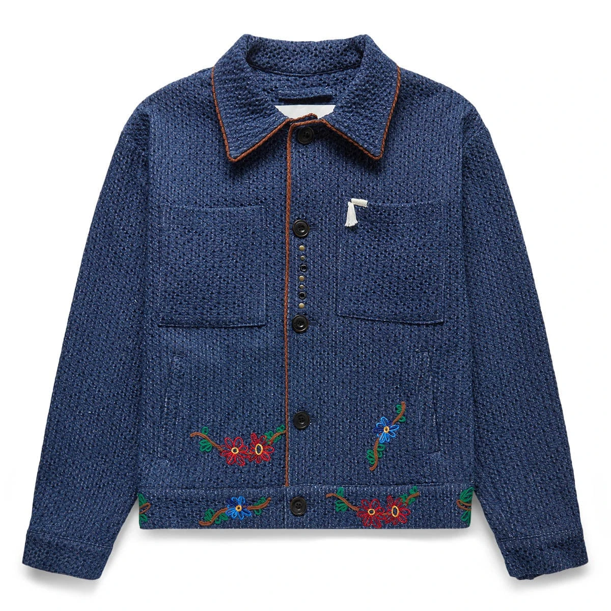 The Denim Hampton Work Jacket features a sashiko construction and embroidered detailing which help turn a conventional work silhouette into something much more light hearted and free. Although its hard wearing material and chest pockets should come in handy when the need arises.