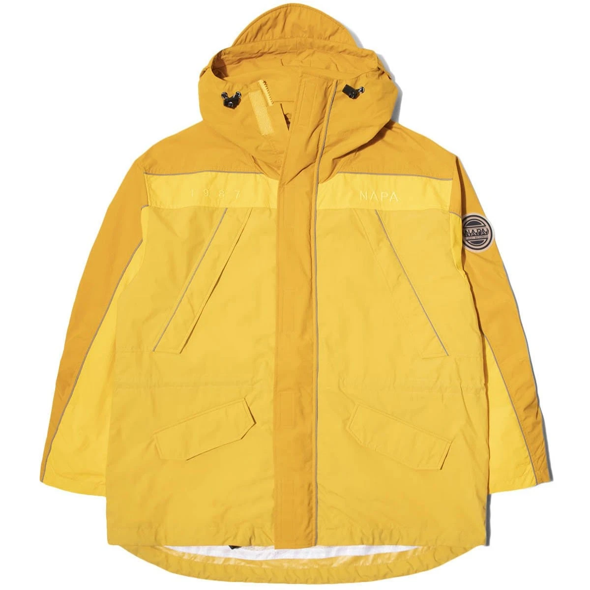 The SS20 offerings from Napa by Martine Rose, the union of acclaimed menswear designer Martine Rose and the upscale outdoors adventurism of Italian label Napapijri, is said to be based around the mental and physical explorations of British surf trips. With retro graphics and a vibrant color palette, they continue to wear their inspirations on their sleeves… and chest and back.