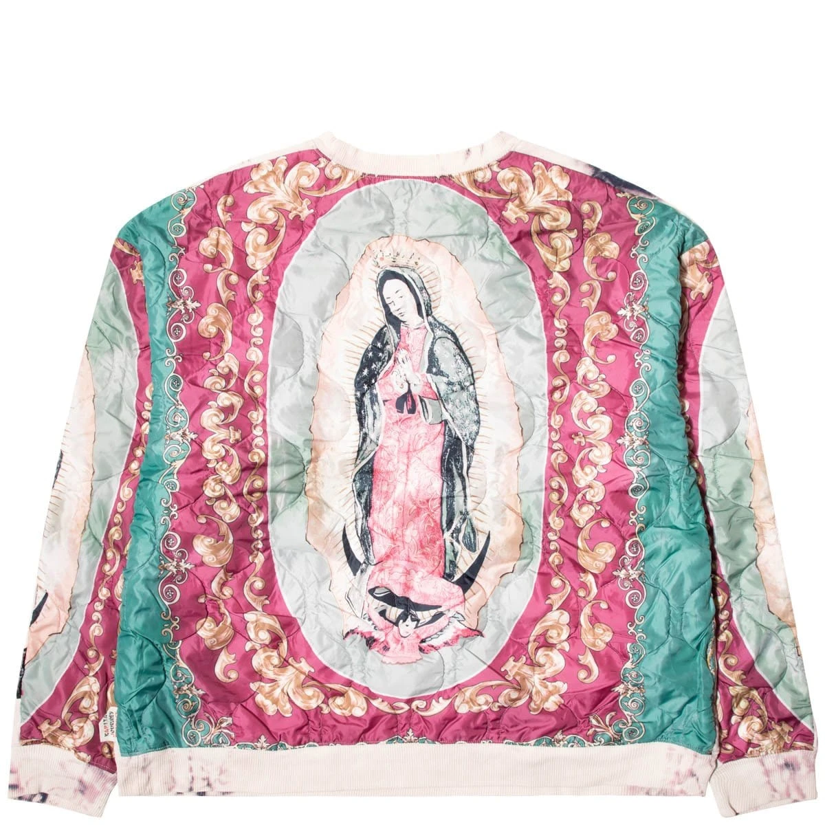 An outdoor-style sweatshirt with a bold switch on the back. Tie-dye fleece sweatshirts are used on the front. The back uses a mysterious design quilting with Maria printed on it. Big size with a relaxed silhouette and comfort.