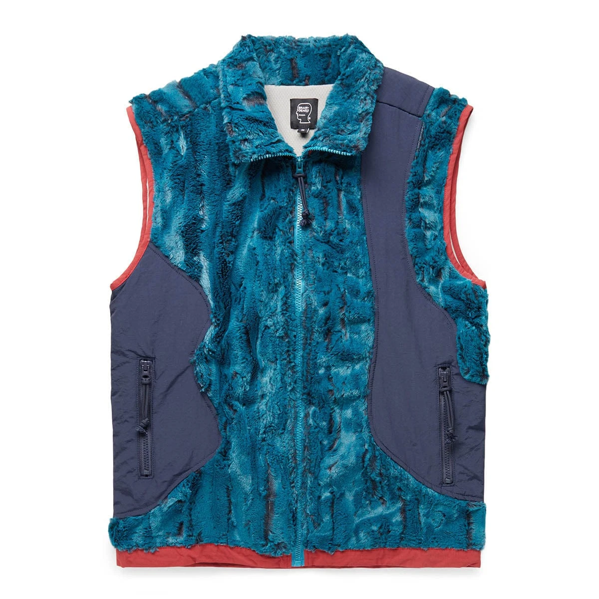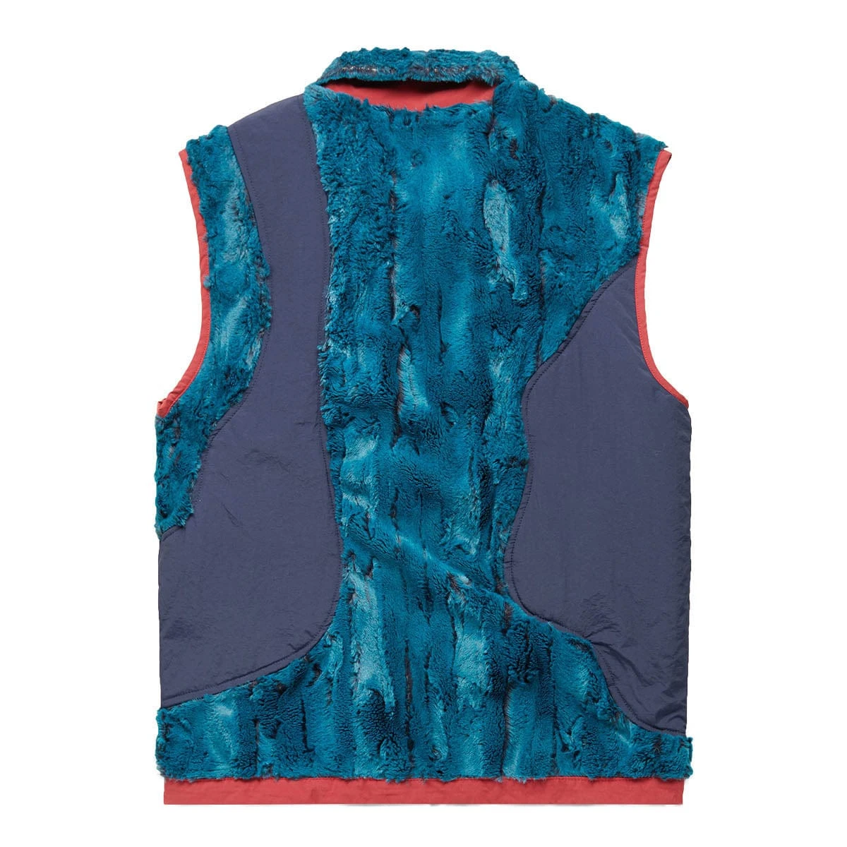 - Faux fur zip vest with organic nylon panels
