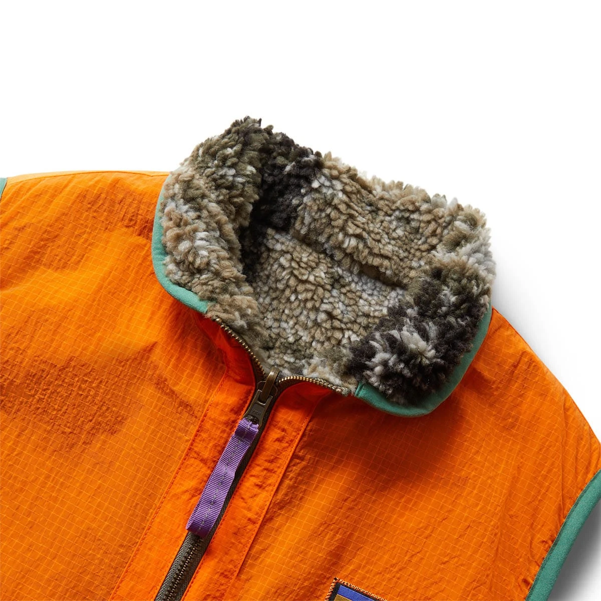 - High pile sherpa fleece outer / grid nylon reverse
