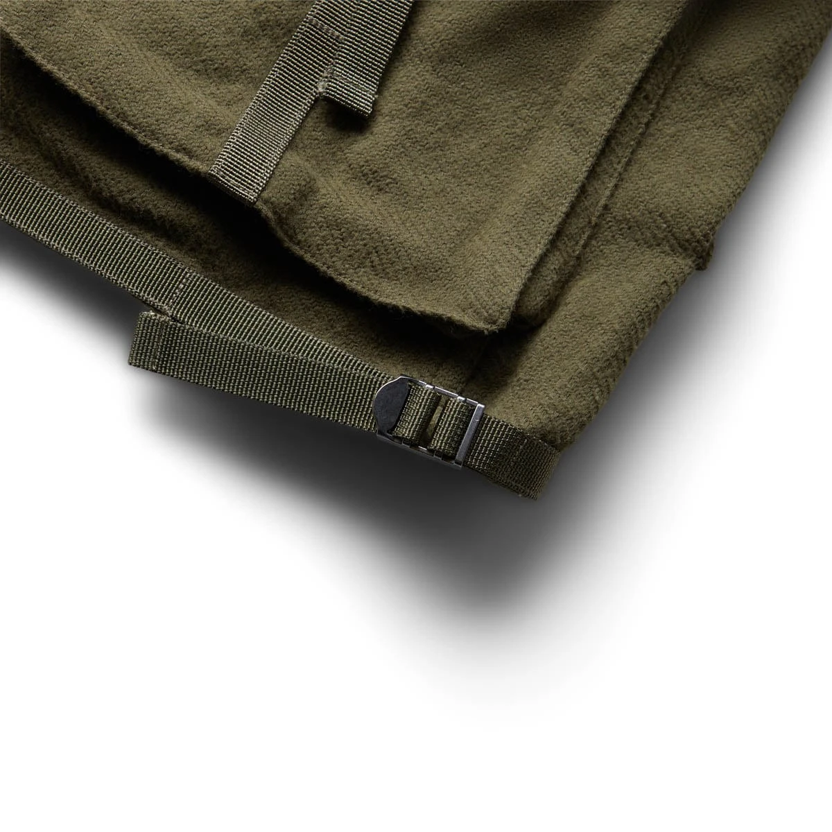 Garbstore’s signature Security jacket is upgraded for AW22 with added functionality courtesy of this olive V2 style. Made from brushed cotton twill, it’s cut to a relaxed, boxy silhouette with dropped shoulders and adjustable hem webbing. Large cargo pockets at the chest are accompanied by an additional three along the back for optimum storage.